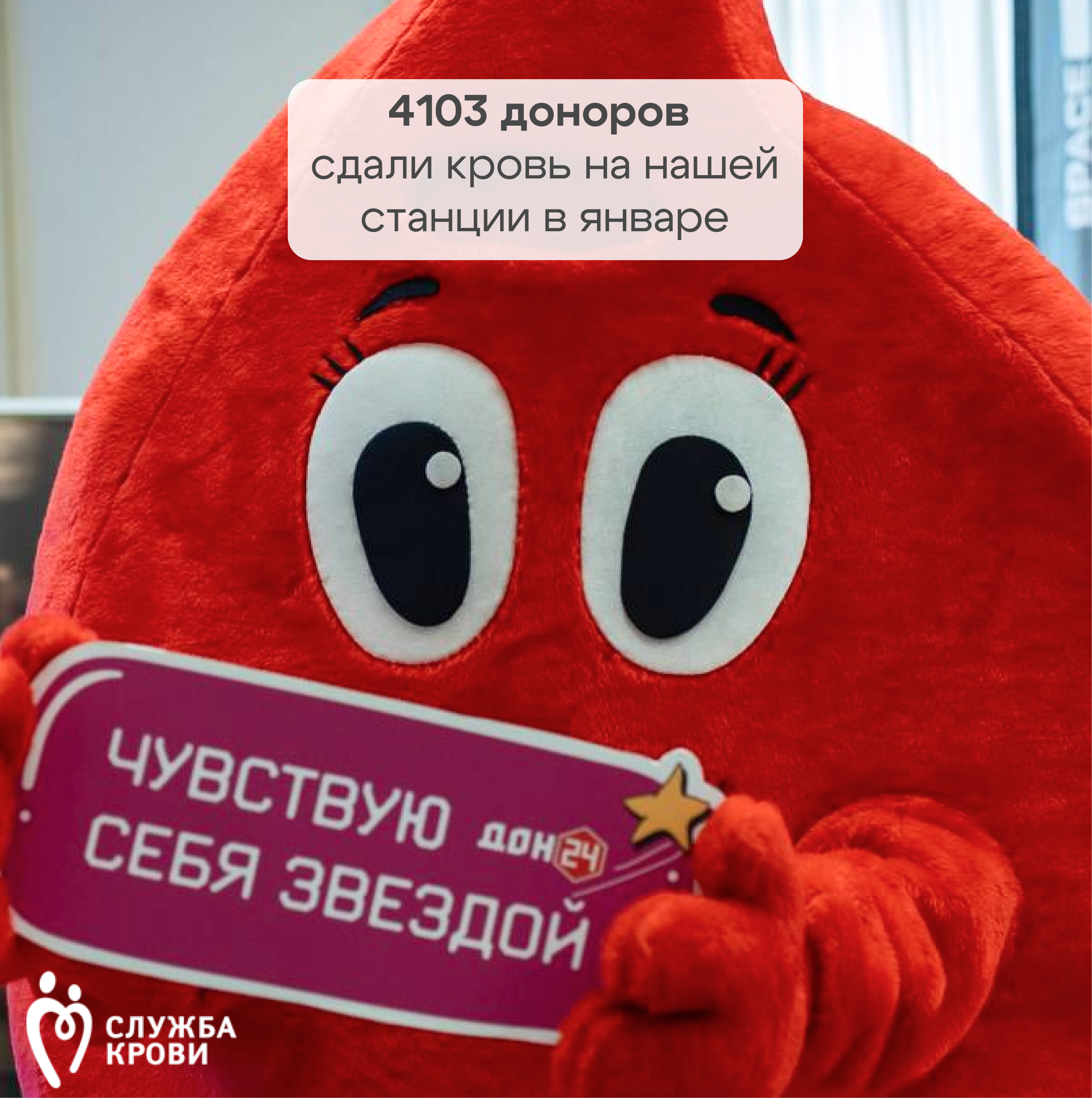 Отличный старт года! Благодаря вашей ответственности и доброте в январе было совершено 4103 донации.